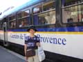 往きに買ったチケットは、10人分の往復切符が1枚にまとめられていて、先の列車で帰った人たち に持っていってもらったので、そのことを説明しなければならない。おずおずと切り出すと・・・駅員さんのマダム(無人駅で、電車の発着時間だけどこからか現れる)が「ペラペラペラペラ・・・」。大変な剣幕なので怒られているのかと思いきや、なんと「あなた方の分も朝払ったのだったら、また払う必要は全くない。車掌には電話をしておくから、安心して乗ってください」・・・・・。列車が動き出すや否や、車掌さんが検札に来られ、「ゆっくり聞きましょう」と、座席に座って、私の今度は少しのおずおず弁を面白そうに聞き、「ウイ!わかった。キップ無しでいいよ。」と。 |
